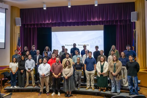 Led by Professors Matt DiRado, Elizabeth Joyce, and Alan Vlakancic the students met with stakeholders from Friendship, Allegany County Planning Officials, and the Allegany County Land Bank to learn more about the town, researched the area, and then put together presentations that included vision boards, a formal presentation of their ideas, and an animated walking tour of the concepts proposed.