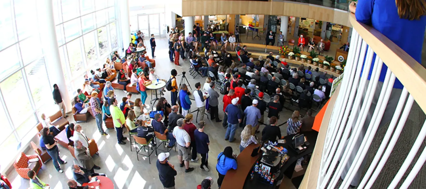 The Student Leadership Center, located in the center of campus, is the premier place for students to gather throughout the day in a “one-of-a-kind” designed space dubbed the “Commons” corridor. The Commons corridor places everyone who enters in the middle of a hub of activity enabling students from different majors, ages, and depth of community involvement to be in direct contact with each other; an “in your face” flavor of student engagement.